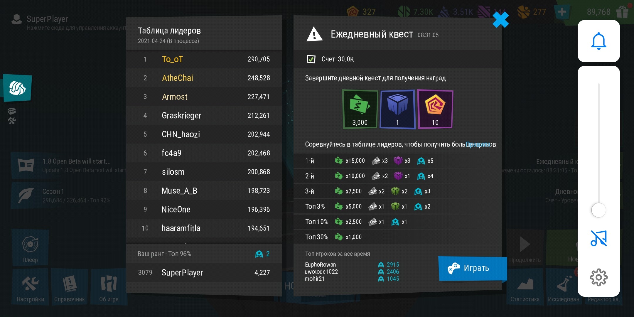 | Description | Играл, играл. Пробился на первые места! И все напрасно. Я очень расстроен :( | ||||