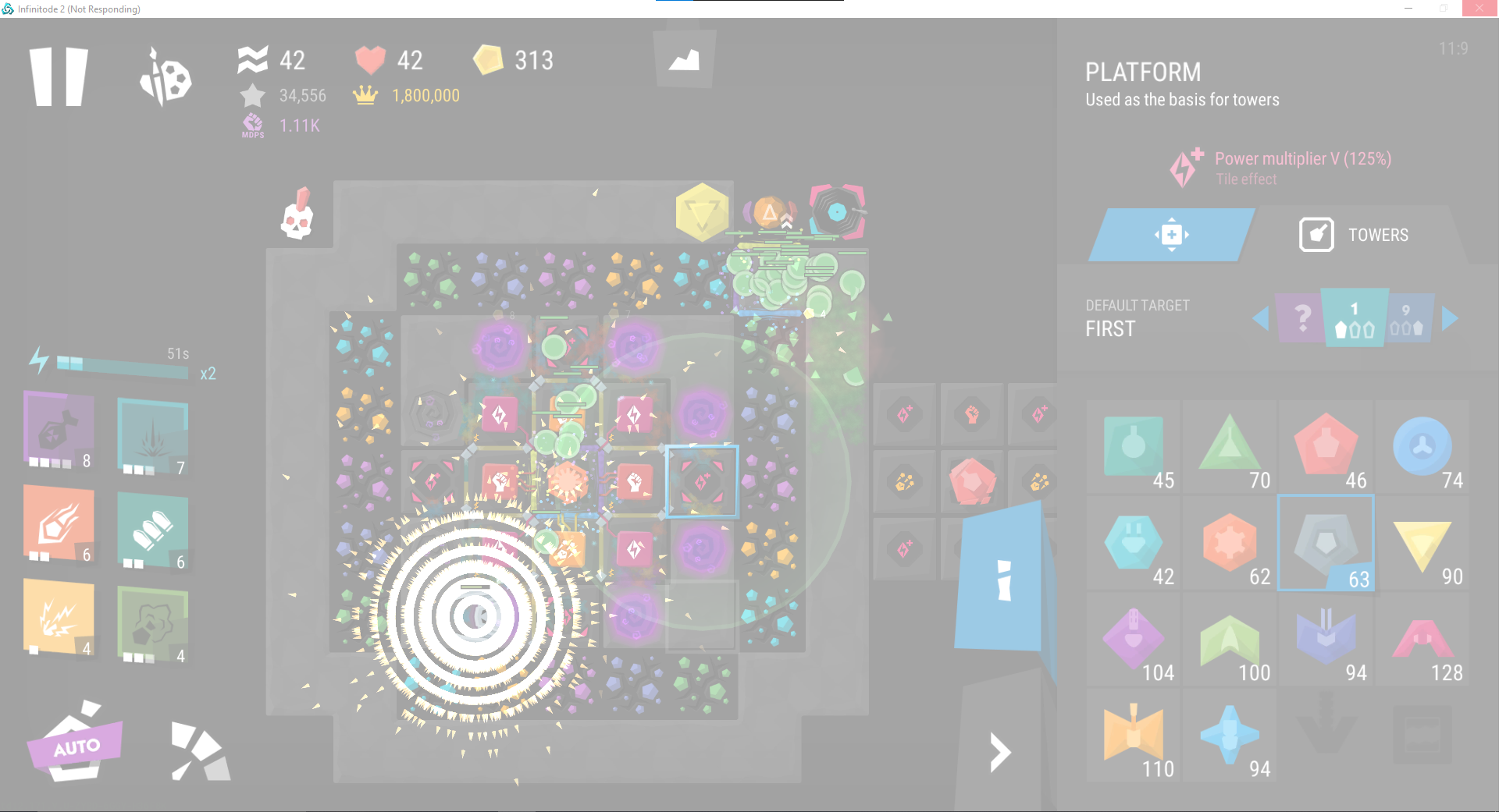 | Description | Was using a splash tower with it's ultimate. When it hit the Constructor (or a unit it was spawning?), the ultimate ability created enough projectiles to freeze the game as seen in the attached screenshot. This was done on a custom map. Game still plays music but is otherwise not responding. | ||||