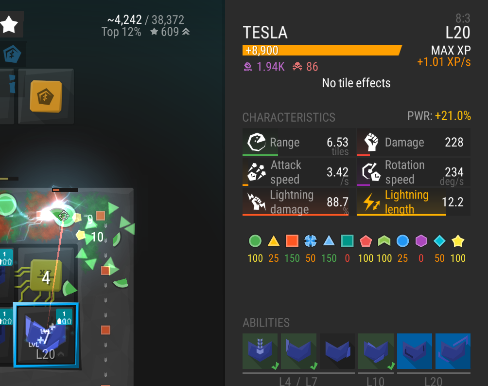 | Description | The new 1.8.3 feature to display excess tower Xp for max leveled tower is instead showing the total XP of the tower. So after reaching level 20 in Normal, the player would initially expect to see +0 as the excess, but instead will immediately see +8900 (for Tesla as seen on the screenshot attached). | ||||