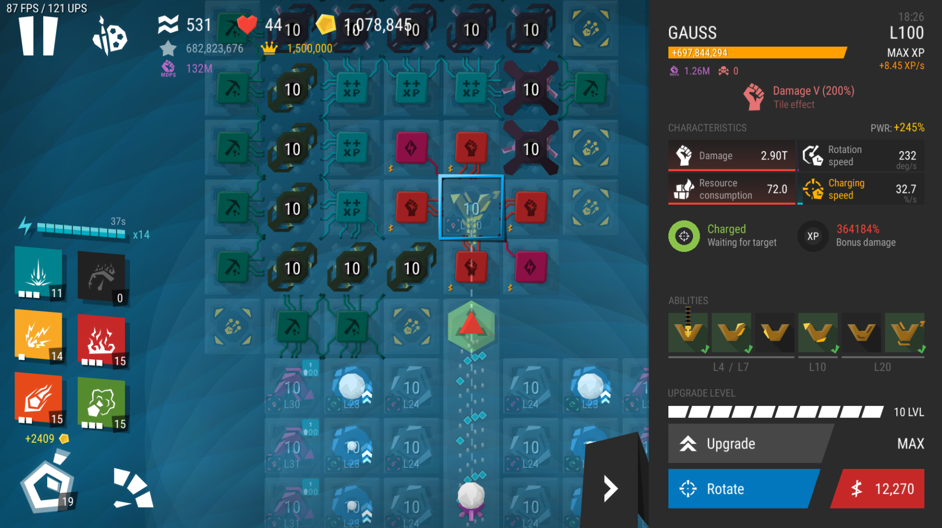 | Description | It is possible for gauss to have far higher damage via self improvement when the experience is transferred to it via the basic ult. There are sometimes a few frames in between when the tower is cloned and the xp is transferred during which if you select self improvement on the gauss you can have it provide way more bonus damage than it should. I have had 364,184% bonus damage from self improvement without Gauss having ever fired a shot which when getting full mods to it can do over 3 trillion damage. | ||||