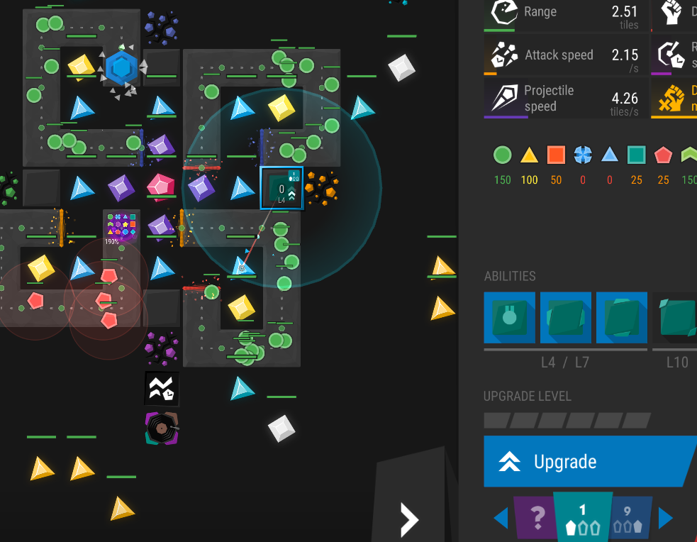 | Description | Affected level : 6.1 (only level with gems available to me) Before: Towers were firing at gems only if there was no enemies in range Now (with 1.8.5) , towers shoot normally only if there is enemies in range at its creation. If it's start to attack a gems, it will not resume attacking enemies when they come in range. Changing Fireing mode seems to reset this behaviour but will inevitable get stuck at shooting gems, soon enough | ||||