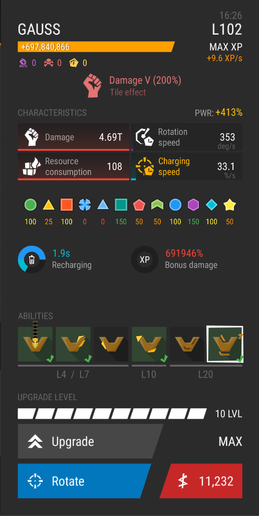 | Description | I tested the results 3 times by using basic clone with full XP to verify the damage. First test was with full research and ended up with 691946% bonus damage from self improvement. | ||||