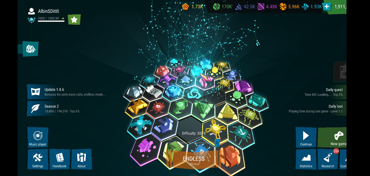 Endless mode difficulty is basically a research. You can set how this research affects difficulty in the main menu. Also, everything that omega said, that's an intended behavior |