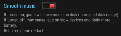 | Description | "Smooth music" option in the settings uses the description of another, removed feature - cached music. | ||||