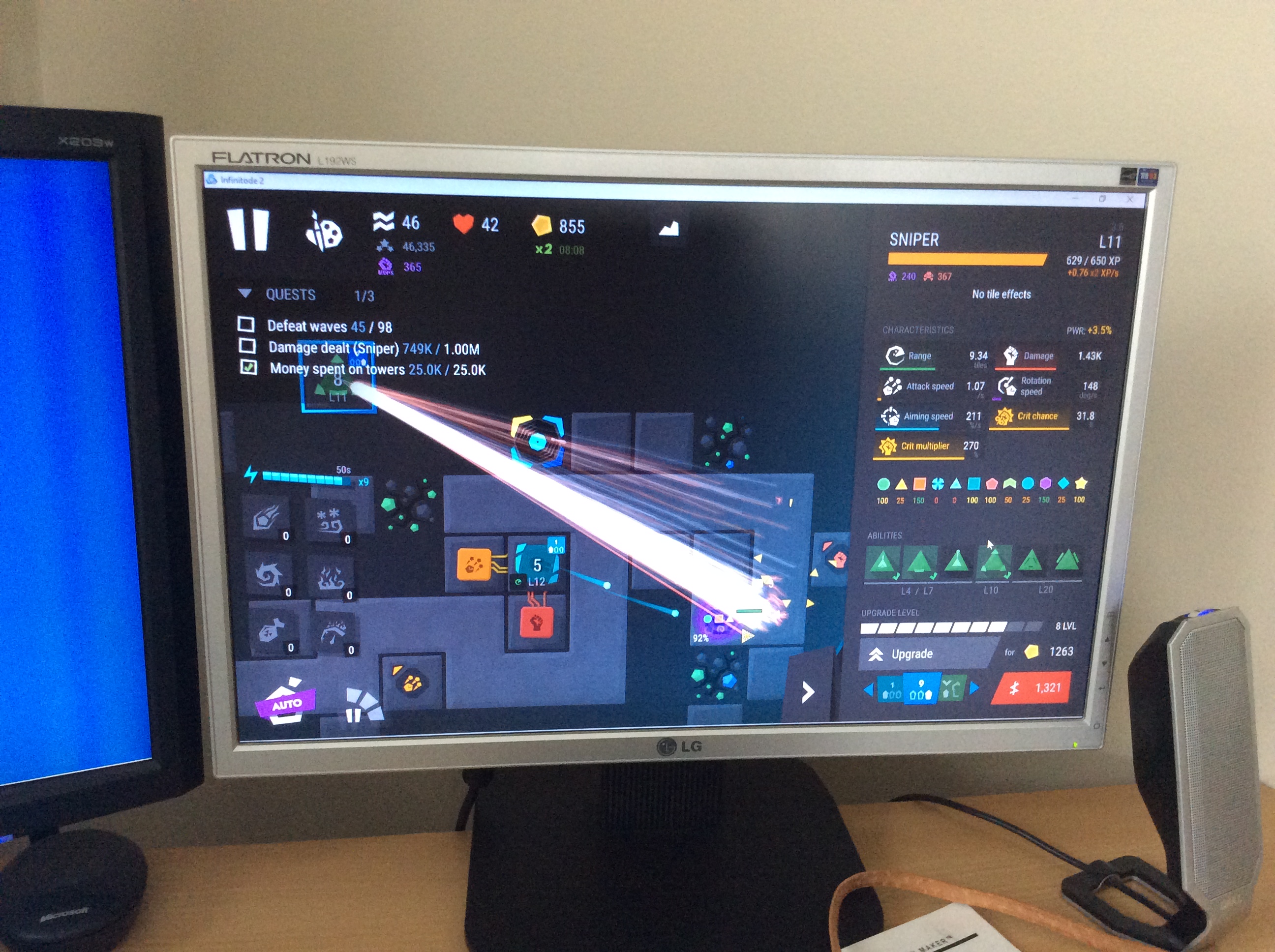 | Description | When you hit the button to turn on bullets, sniper makes a giant white beam and lags the game a tiny bit. This only lasts for about 3 seconds. | ||||