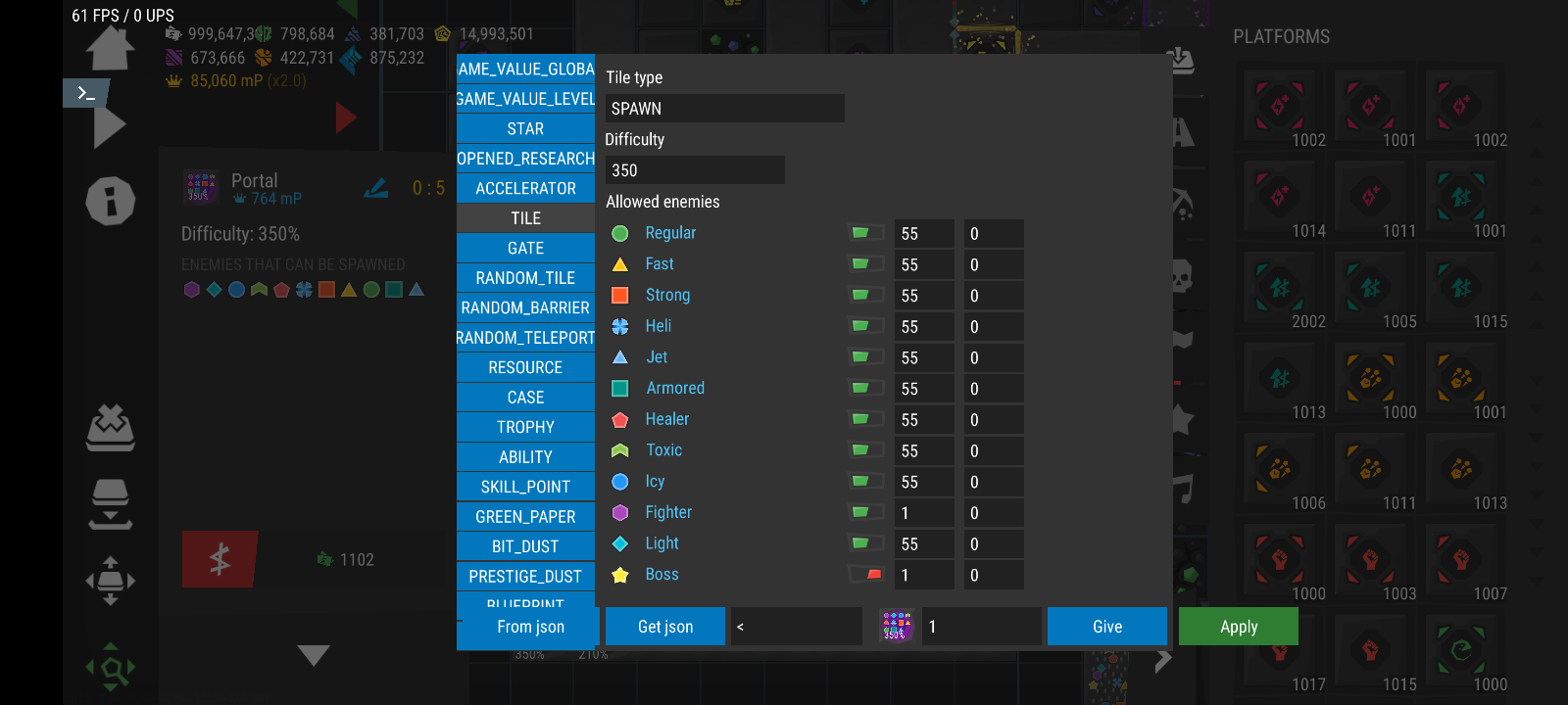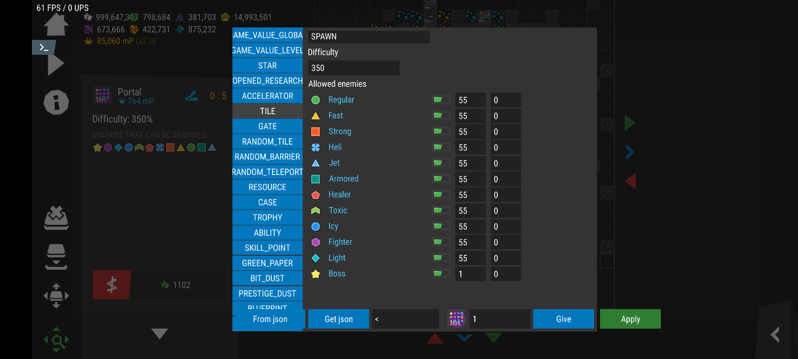 | Description | It doesn't load correctly (even when loaded by from json option) when there are many different portals with different enemy Luckily there's a workaround, enabling boss enemies (star) and leaving it at (start at wave 1 and spawn endlessly) seems to make the current portal's enemy configurations load correctly so adding it to all portals fixes the issue and choosing the right boss spawn would be by putting that portal in the left-bottom corner | ||||