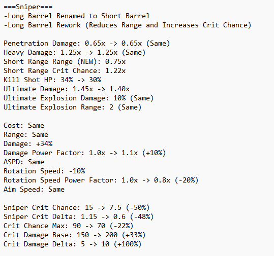 A tower that fills a similar role to Sniper is Minigun, (Single Target Damage Dealers / Cleaup). From 1.8 to 1.9 Minigun saw a Damage Decrease of around 46% at each level of upgrade. This is on top of other changes such as the Minigun bullet spread and the slight nerf to its debuff. In 1.8, it was used to clean up enemies like Healer and Armored, but with 1.9 Sniper feels like a much better tower for dealing with these enemies despite having 50% less efficiency against said enemies. The minigun ultimate change was nice, however, powerful still out DPS' it on normal mode, even with both microguns dealing damage. TL:DR |