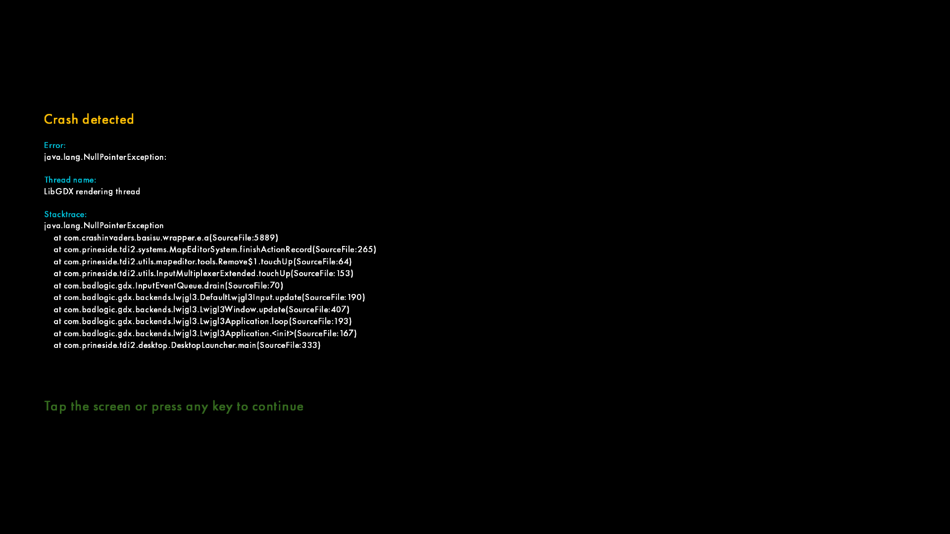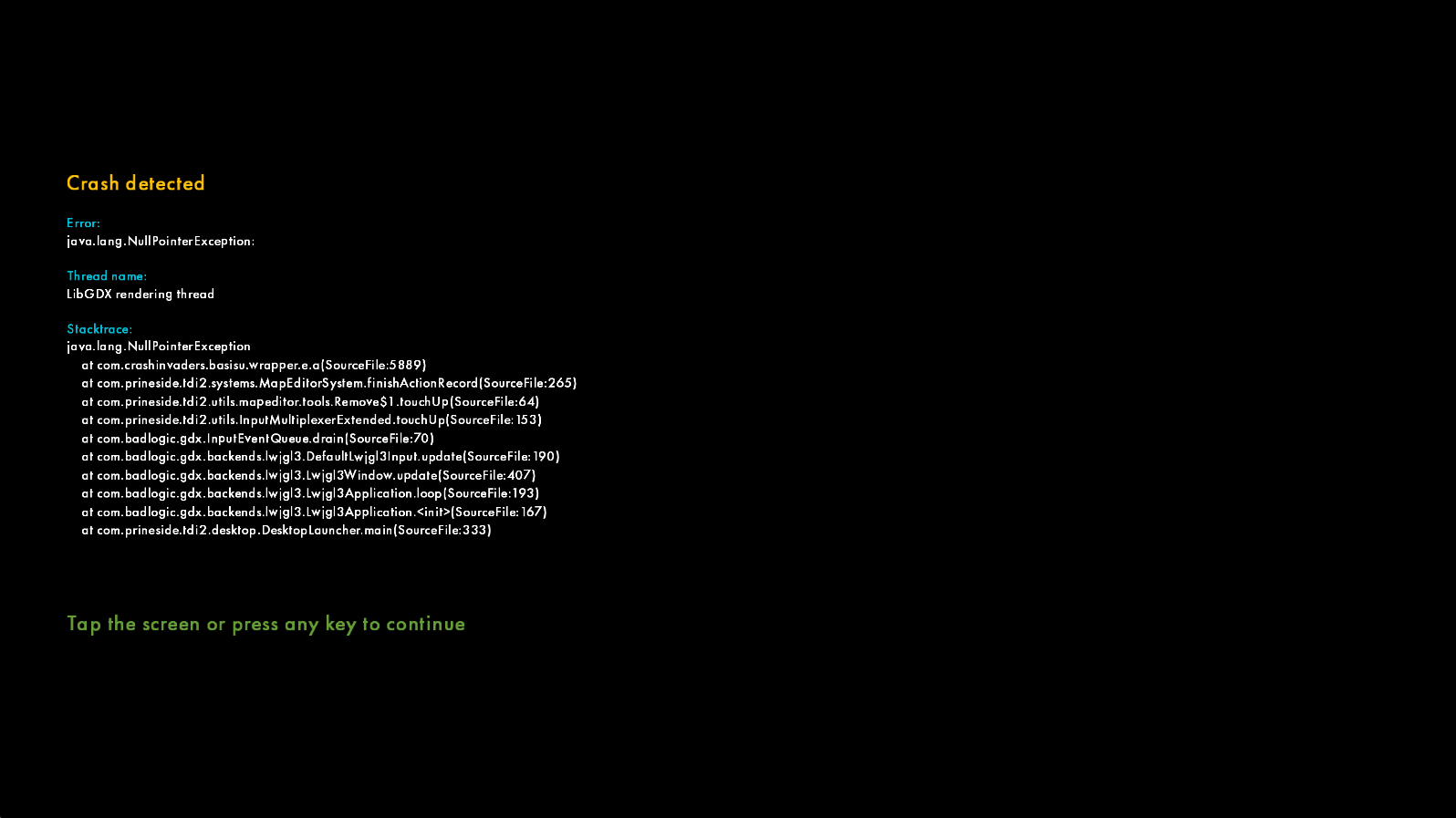 | Additional Information | the other buttons in the map editor ui do not cause this crash ive sent the crash report and the video of the crash (the game crashes when the cursor disappers for a split second after clicking on the grid, the video itself is also slightly compressed to get under the 2mb limit) | ||||