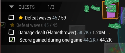 | Steps To Reproduce | I am unable to reproduce it, but a likely cause seems to be because I completed another quest for defeating waves, and the time when it went offscreen was at the same time I completed the score quest. | ||||