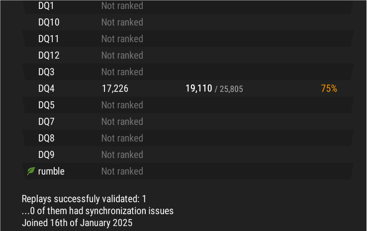 | Additional Information | The above bug was tested using a new account, test1338, U-MQ22-KM4M-MSLEC8, which was registered on January 16, 2025. On the same day, the account submitted a replay for DQ4, while the level allowed to be played on January 16, 2025, was DQ3. | ||||