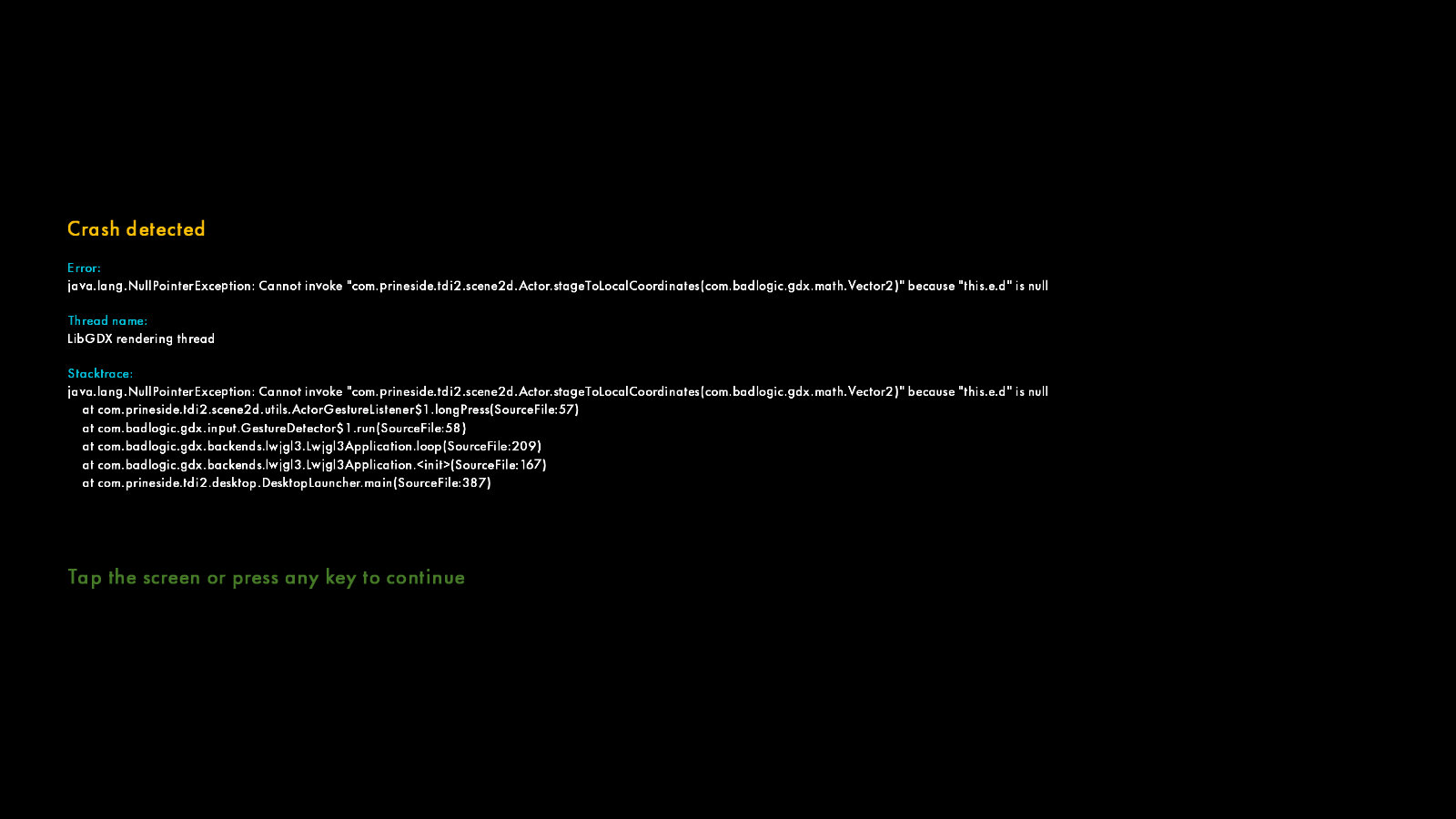 | Description | In MUSIC Tile: after I press "Load from URL" and then hit CANCEL or "Select File" and then CANCEL, etc. additionally Steam does not recognise the game as being closed so I guess some processes are still running after a crash | ||||