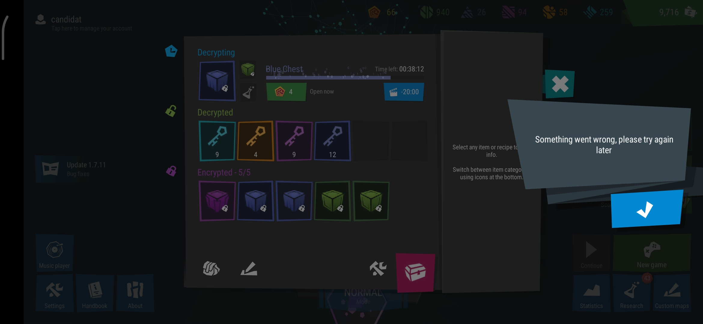 Well looks like it is a big issue and, unfortunately, I'm unable to fix it (this issue is caused by 3rd party ad library). Infinitode 2 uses AdMob to serve rewarding ads and it simply says that there are no ads to show. Another solution is to use some other ad library but most / all of them tend to serve just awful or abusive ads. There's just no good solution for this issue. I thought of implementing something like "get bonuses for ads without watching them for 1 month" thing for $3 just because ads simply refuse to work and I've already tired to search for a solution, but I understand that many players love ads because they are free and payments won't make any sense. |