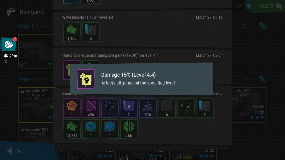 | Description | I currently cannot find a way to see the level dependant buffs that you win in some missions, maybe a list, like the trophies, or mark it in the base of each level, just so we can keep track of it, thank you a lot for this beautiful game and good luck. | ||||