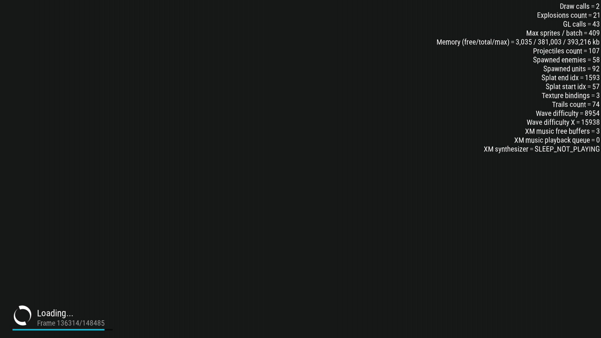 The same on level 5.7 after 148 wave. Frames loading slowing down after 150k frsmes, then hangs, then crashes. |